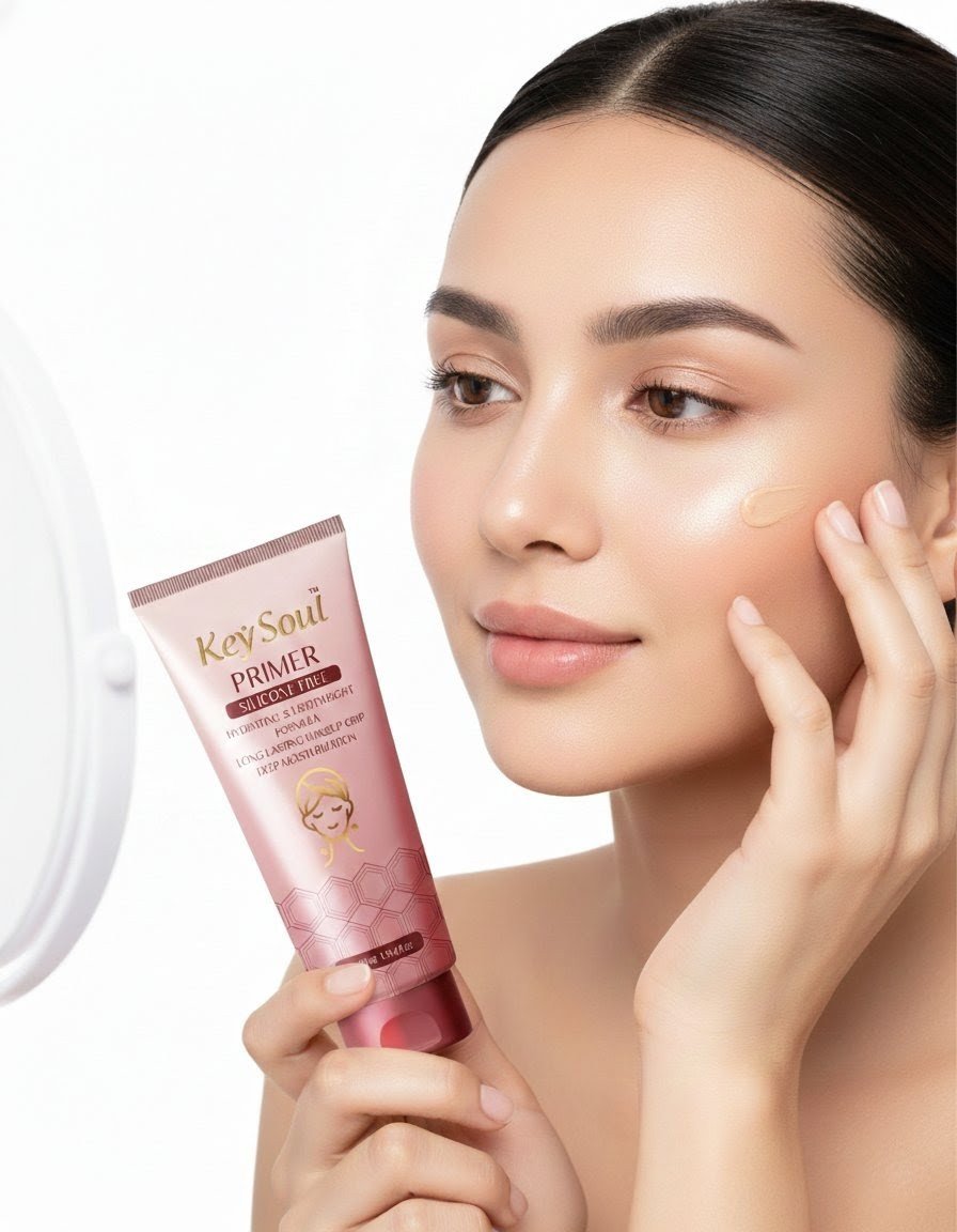 Achieve a flawless, smooth base with the KeySoul Silicone-Free Primer. This ultra-lightweight, hydrating formula creates a perfect canvas for your makeup, ensuring a long-lasting grip and deep moisturization without clogging pores.